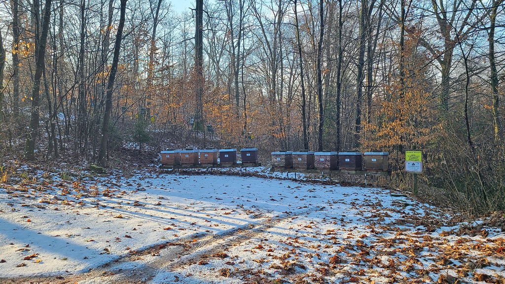 Im Winter liegt über der Belegstelle Hirschgrund eine zauberhafte Stille. Schnee und Eis am Waldboden, Raureif glitzert auf Zweigen, und die kalte Luft ist klar und rein. Wo im Sommer emsiges Treiben herrscht, breitet sich nun Ruhe aus. Kein Summen, keine Hast, nur das leise Knacken des Waldes. Der Hirschgrund zeigt seine stille Seele und erinnert daran, dass Erholung oft im Innehalten liegt, bevor neues Leben und geschäftige Bewegung zurückkehren. Die sanfte Wintersonne steht symbolisch für die leise Vorfreude auf kommende Tage.